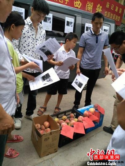 陳國西“贈桃尋妻”的舉動引來不少路人幫忙散發(fā)尋人啟事。韓章云 攝